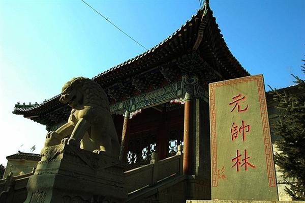 因张作霖非帝王将相,而得名“元帅林”,如今元帅林是省级重点文物保护单位。景区内有中国北方最大明清石刻群和现代书法碑刻,堪与清关外三陵媲美。陵园雄踞在高岗之上,临水朝阳,沉壁倒影,碧波荡漾,浮光耀金。远看松针新采、郁郁葱葱、凌檐翘顶;近闻松涛鸟语,墓园寂寂,文物斑斑。