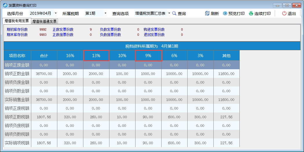 “报税处理/发票资料”中增加对13%和9%税率的发票数据的汇总统计。