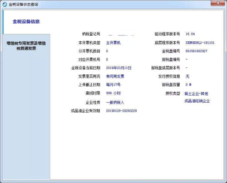 根据国家税务总局要求,开票软件取消汉字防伪授权,对于有汉字防伪授权的企业,金税设备状态查询的金税设备信息中不再显示汉字防伪授权。