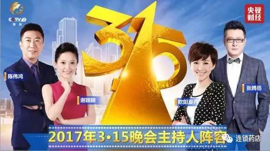 今年3.15晚会,由欧阳夏丹、陈伟鸿、谢颖颖、张腾岳四人主持。