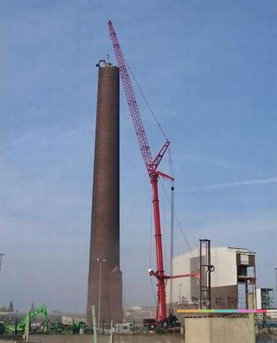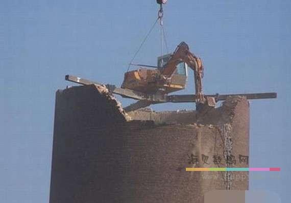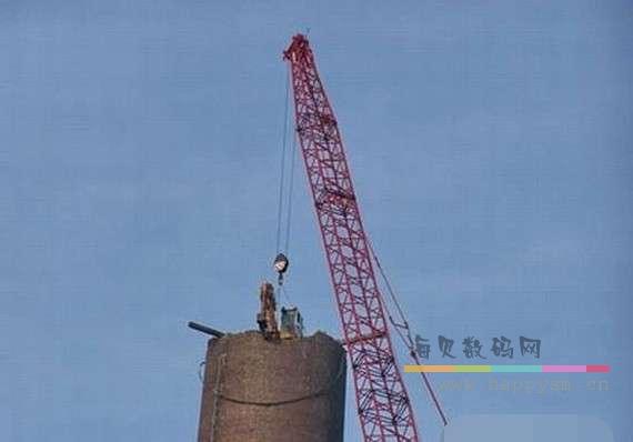 挖掘机百米高空拆烟囱作业,蓝翔高材生表示自愧不如