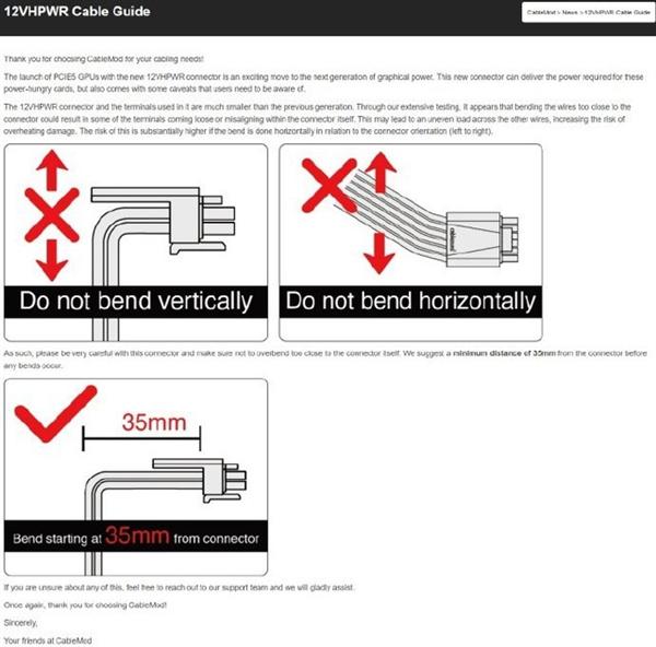 为了避免显卡烧毁,我们要做的就是不要在接近接口的地方弯折电源线,尽量留出 35mm 以上的长度,如果机箱内部空间有限,可以打开侧板获得更大的空间,同时辅助线缆减少弯折。