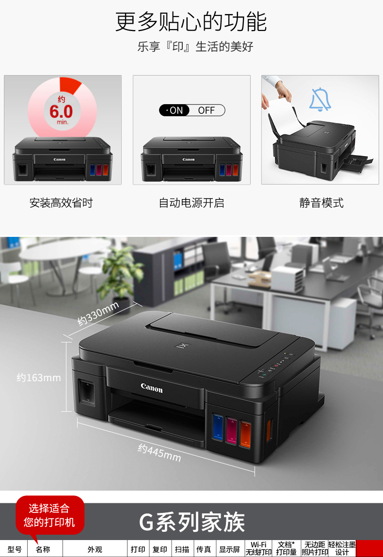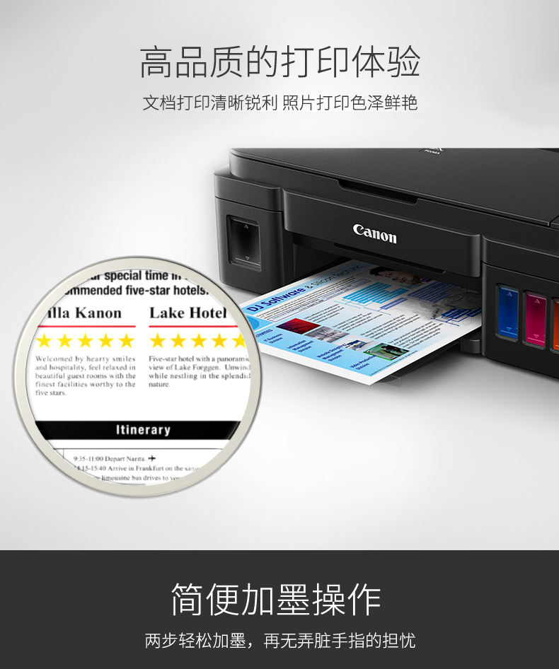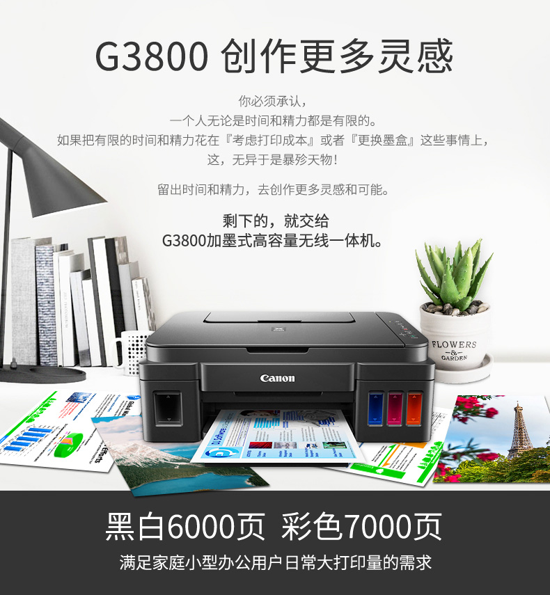 • 佳能 G3800 加墨式高容量一体机(荐)
