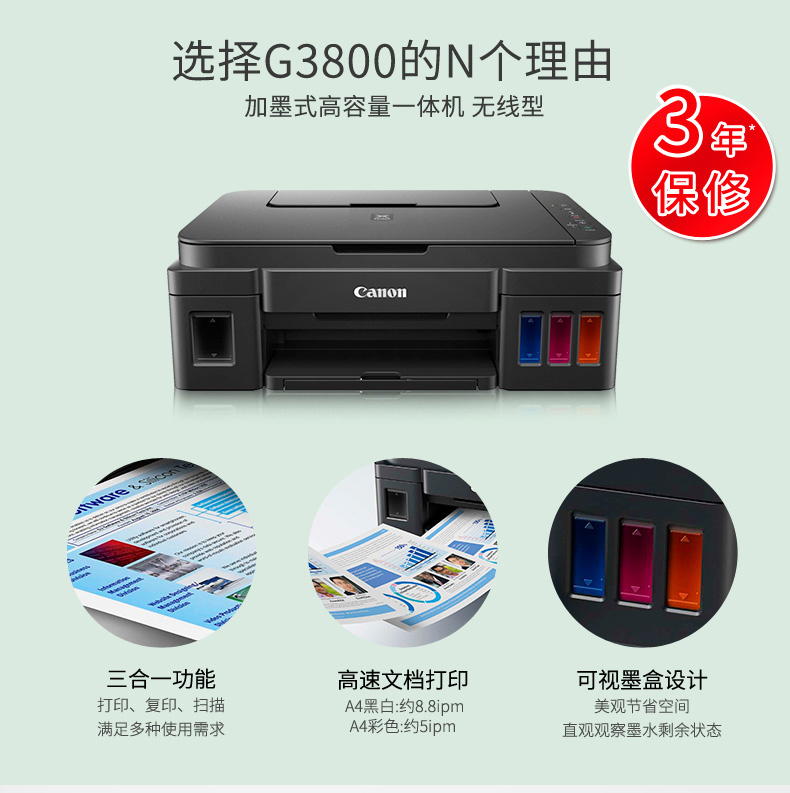 佳能 G3800 加墨式高容量一体机(荐)