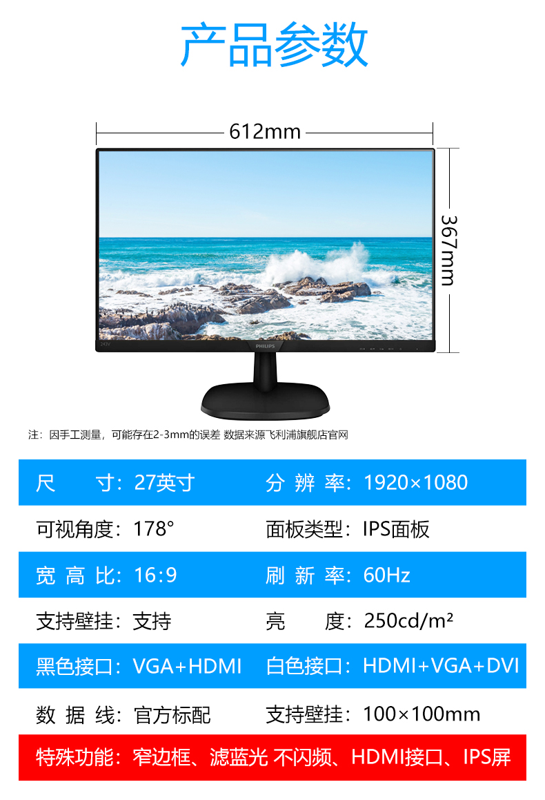首页 > 电脑硬件 > 显示器 > 飞利浦 > 飞利浦 273V7QHSB 显示器