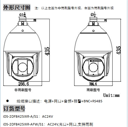 iDS-2DF8425IXR-AFW/S1:AC24V,光口+网口,支持雨刷