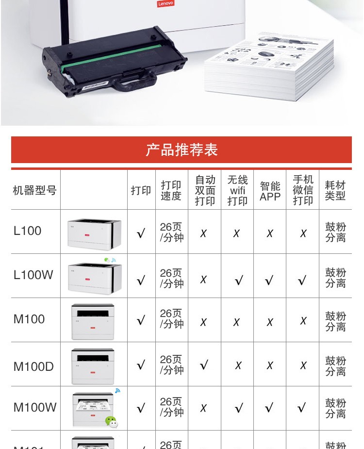 • 联想 领像 M100 W/D 无线黑白 一体机 激光