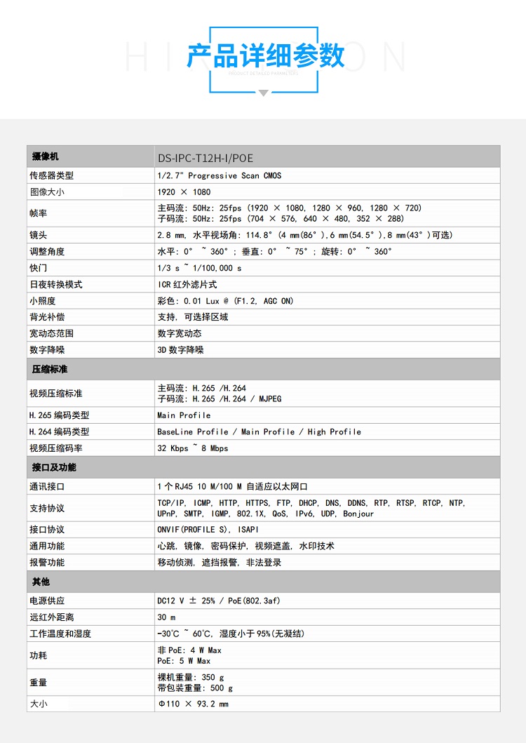 海康威视 DS-2CD7047EWD-A 高清网络摄像机