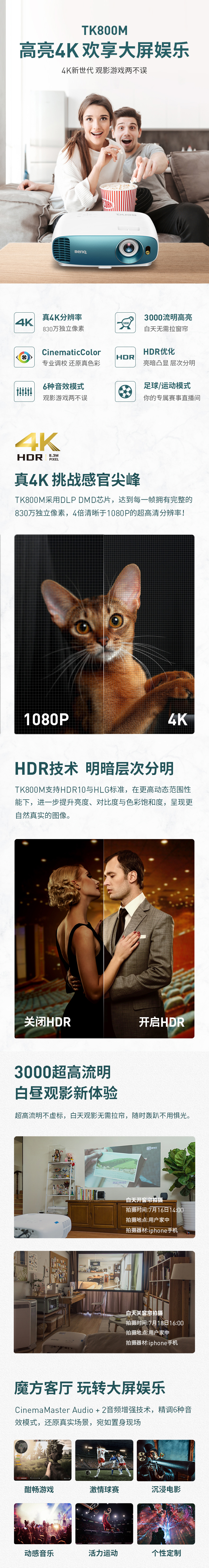 • 明基 TK800M 超高清家用4K家庭影院超清HDR投影机benq电视投影墙投游戏投影(荐)