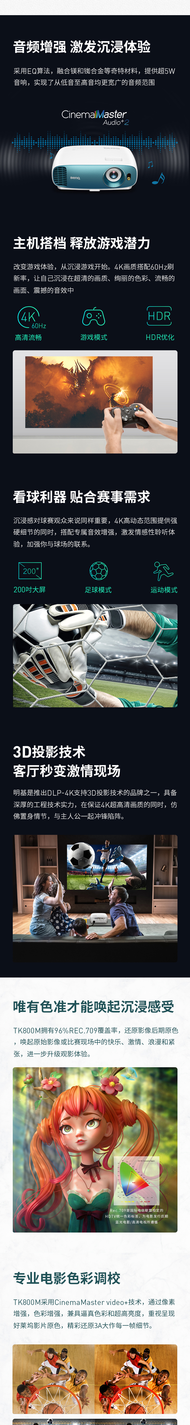 明基 TK800M 超高清家用4K家庭影院超清HDR投影机benq电视投影墙投游戏投影(荐)
