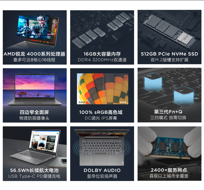 锐龙R5-5500U(6C+12T)/16G/512G固态/集显/win10家庭版/14英寸/小新/灰色