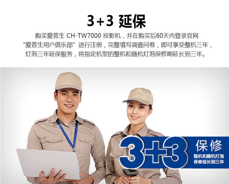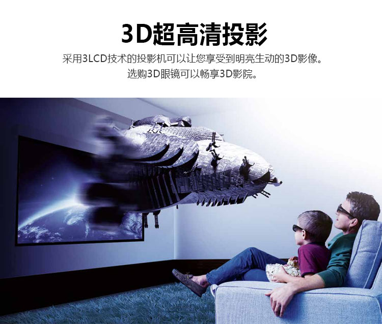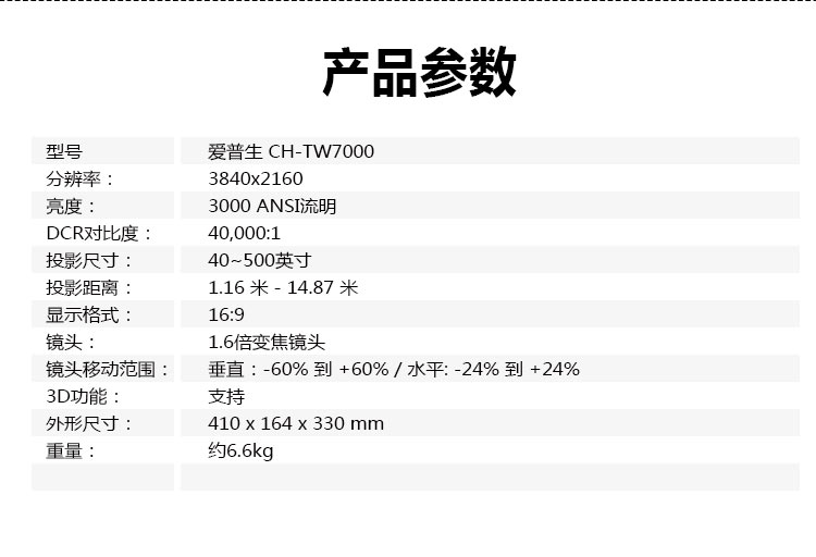 • 爱普生 CH-TW7000 (TW6300升级版)投影仪 4K 3D超高清投影家用娱乐家庭影院投影机