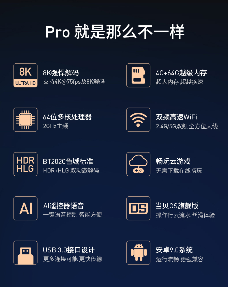 • 当贝 超级盒子 B3 Pro 网络电视机顶盒 8K超高清智能网络电视机顶盒  8K UHD旗舰性能怪兽 4G+64G大内存 千兆网口