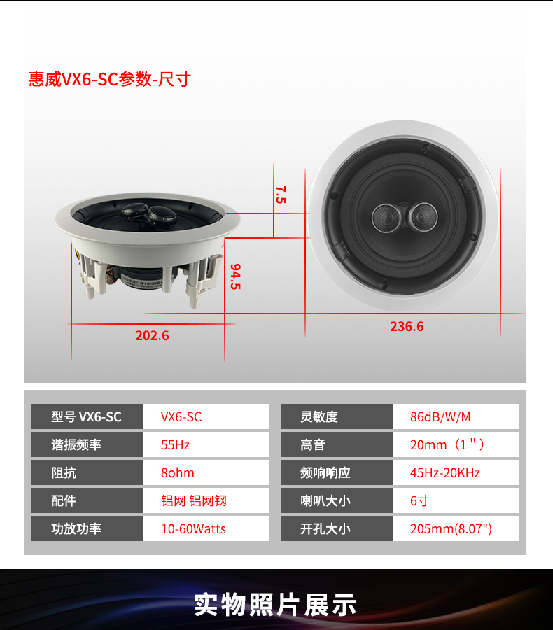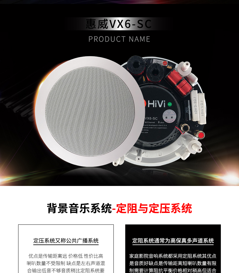 • 惠威 VX6-SC 吸顶定阻喇叭 音箱