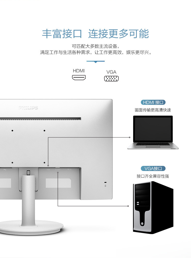 飞利浦 271V8  IPS显示器 27英寸液晶可壁挂 窄边框HDMI(荐)