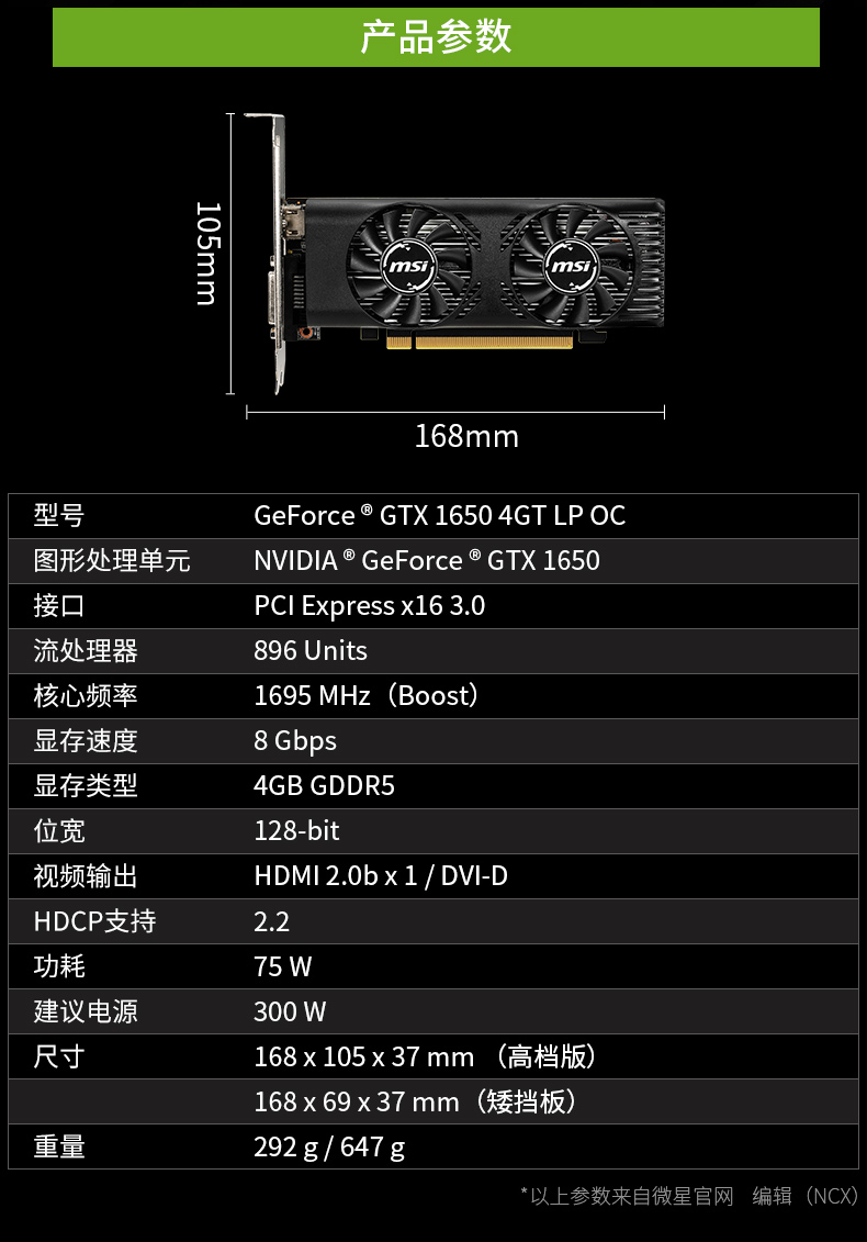 微星 GTX1650 4GT LP 刀卡半高显卡HTPC游戏电脑显卡