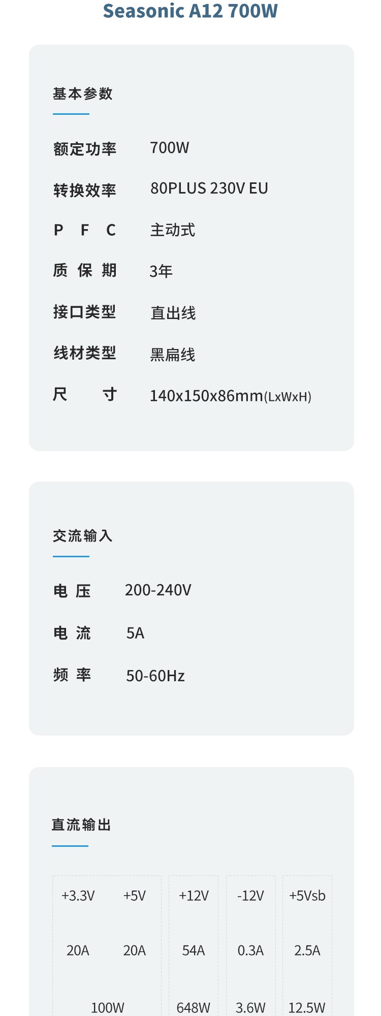 海韵 A12-500W 额定500W