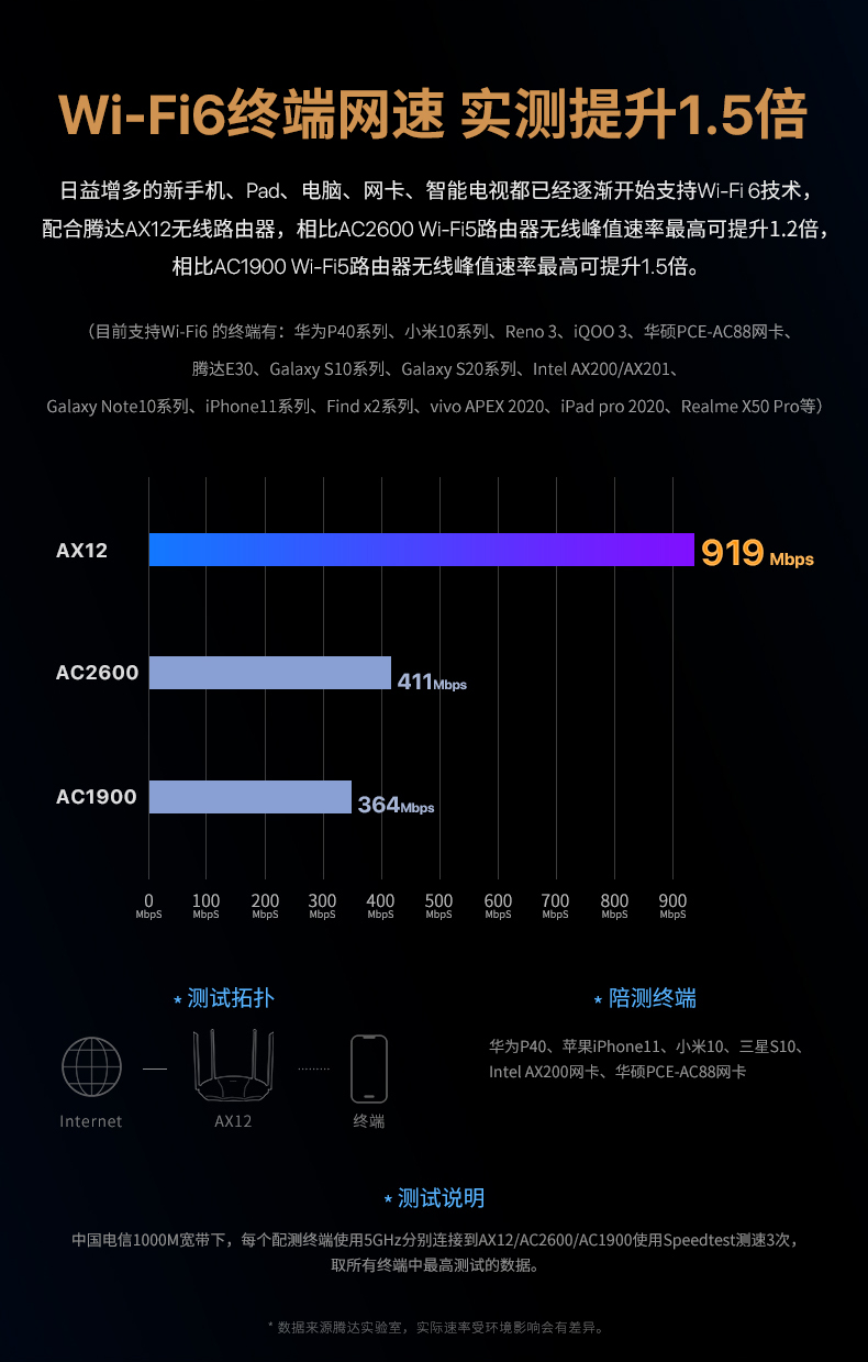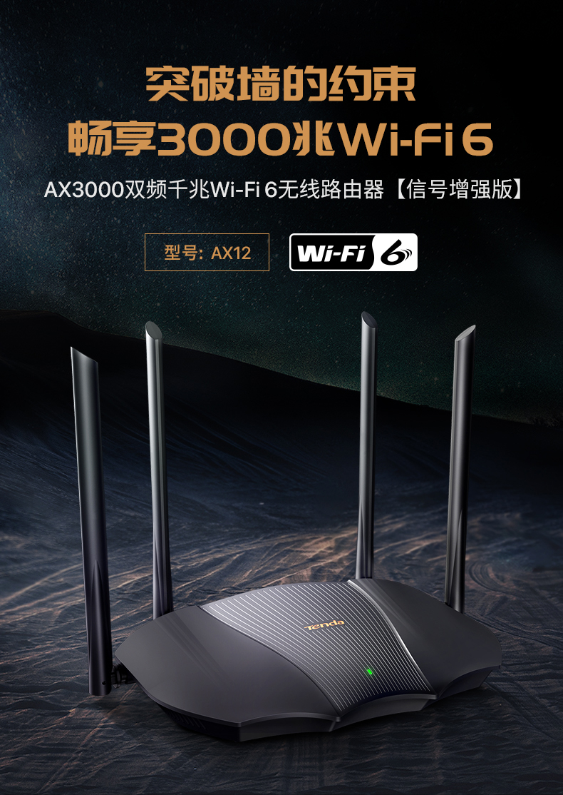 • 腾达 AX12 无线 路由器 家用千兆端口5G双频3000M无线速率wifi6大户型大功率增强器穿墙王宿舍学生寝室