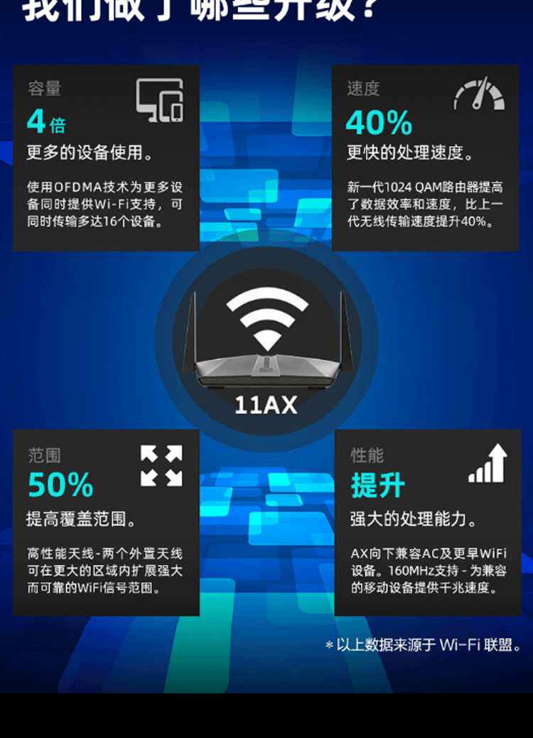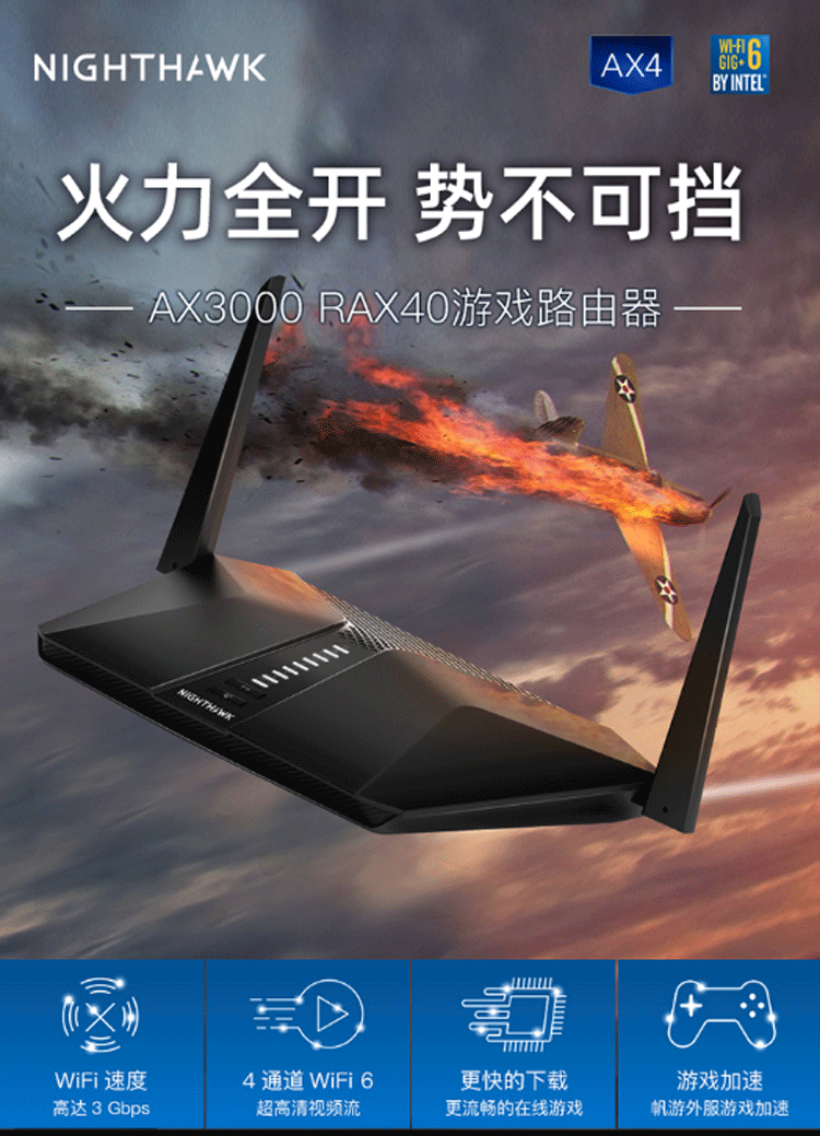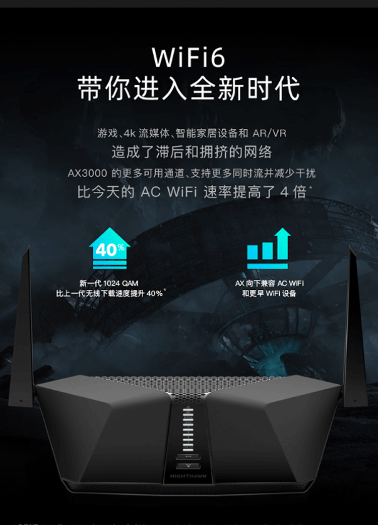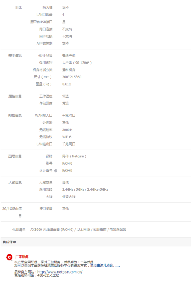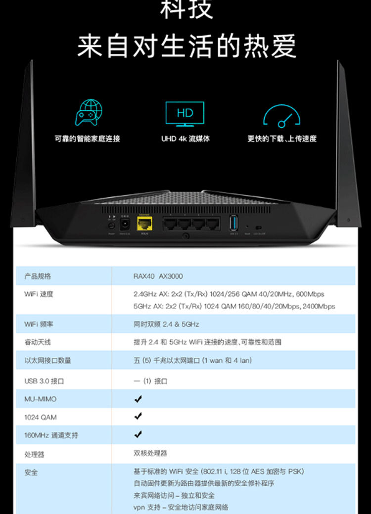 • 网件 RAX40 AX3000双核CPU无线高速路由器 WIFI6 5G双频全千兆网口