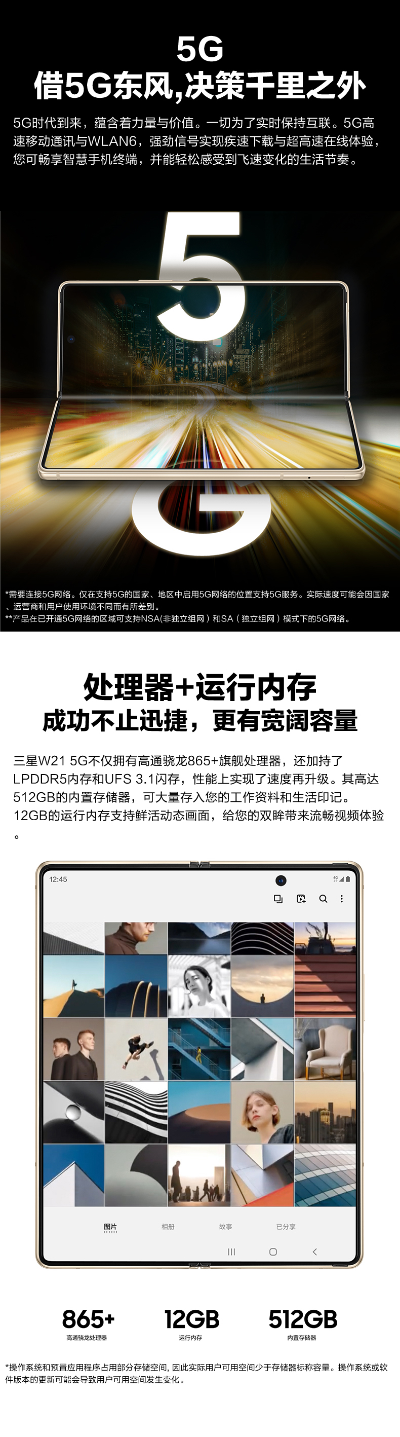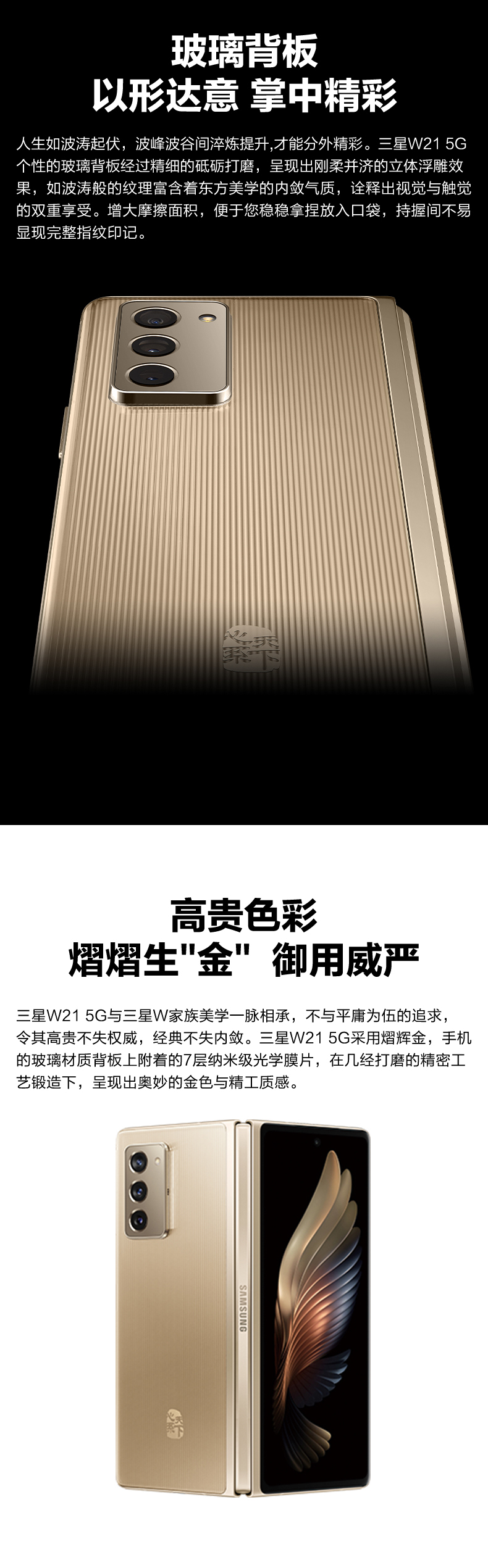 三星 W21  SM-W2021折叠手机 熠辉金   双卡5G 512G