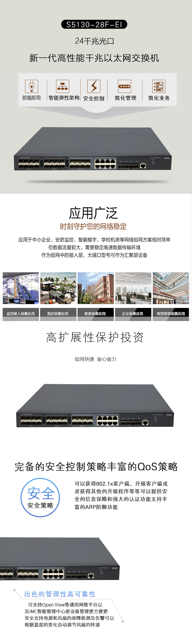 • H3C S5130S-28F-EI 24口 千兆SFP(8Combo)+4万兆光口交换机  高性能,安全控制策略