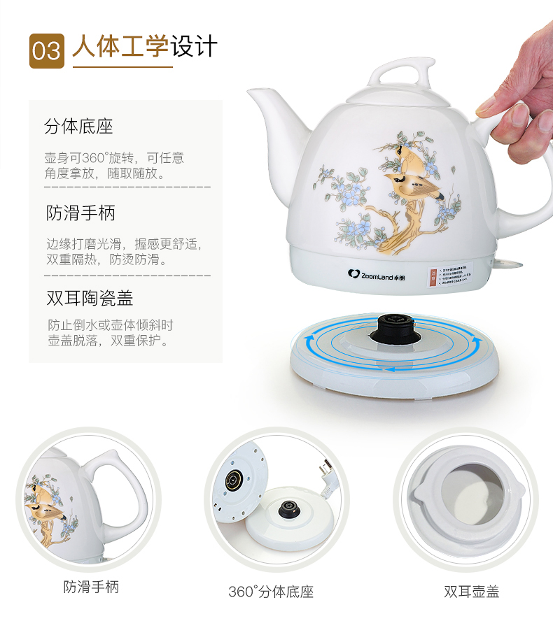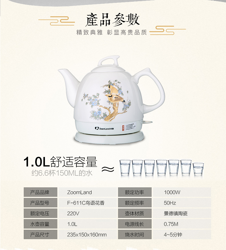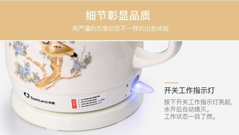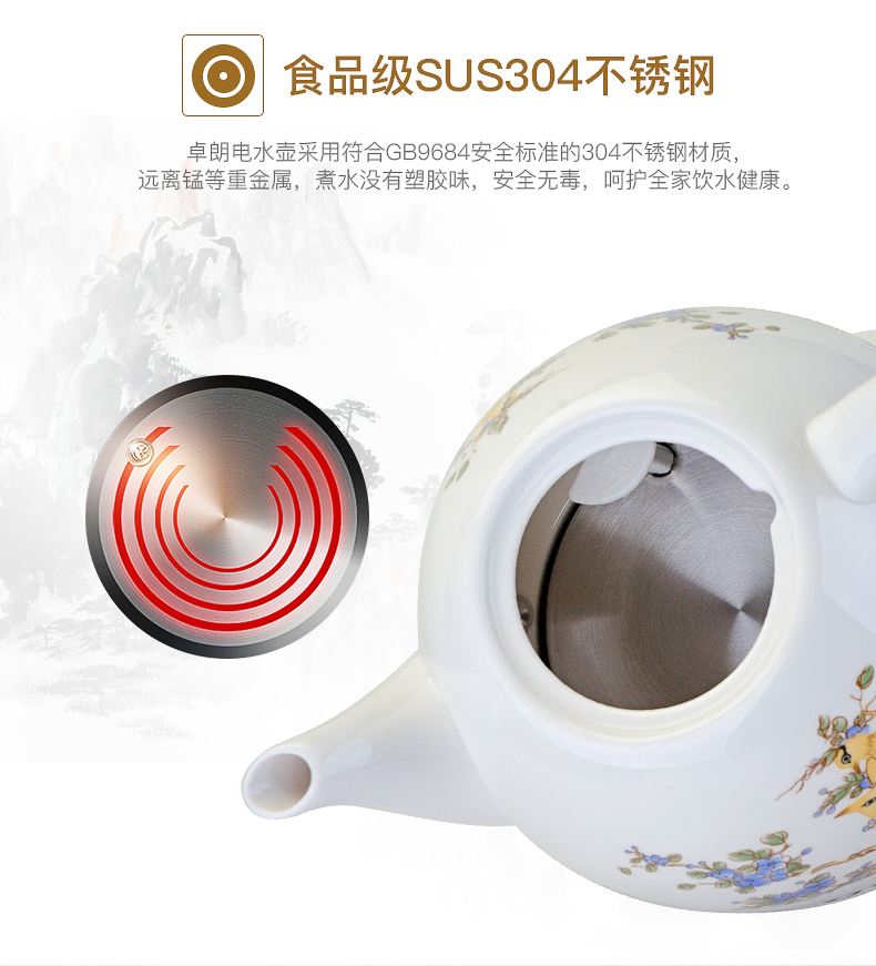 • 卓朗 F-611C 电热水壶 (陶瓷)