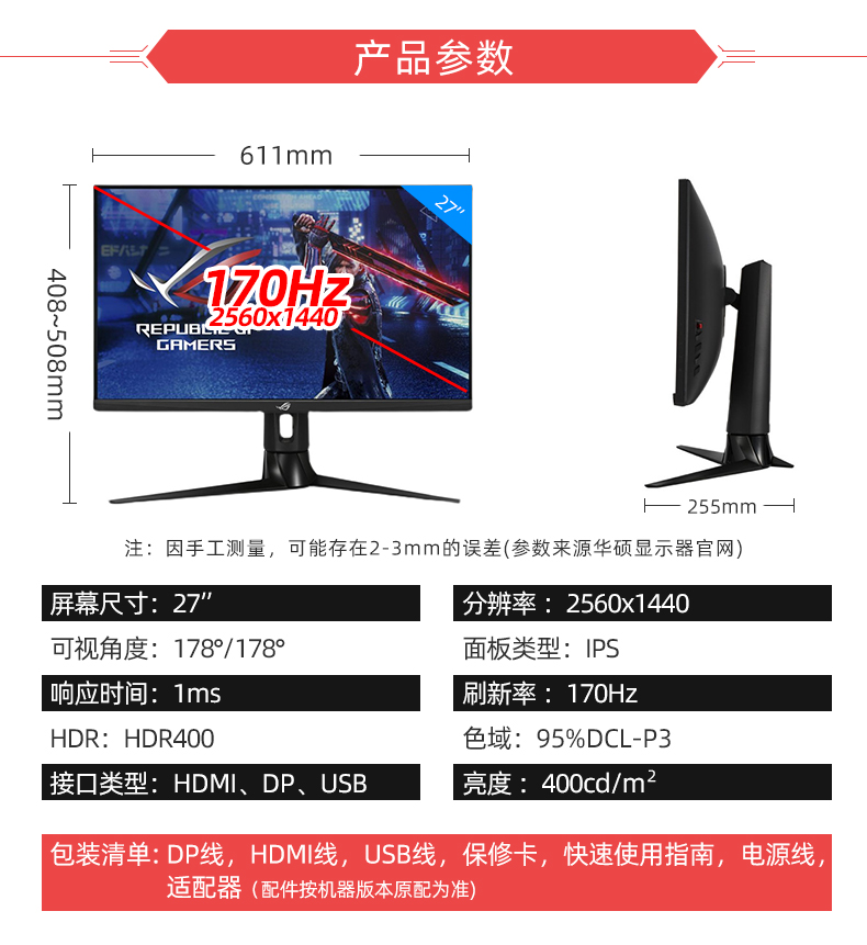 华硕 ROG Swift PG65UQ HDR1000120Hz HDR游戏4k 显示器