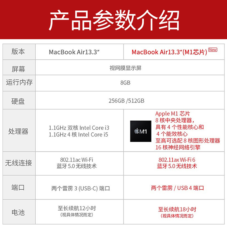 • 苹果 MacBook AIR 笔记本 M1系列 13