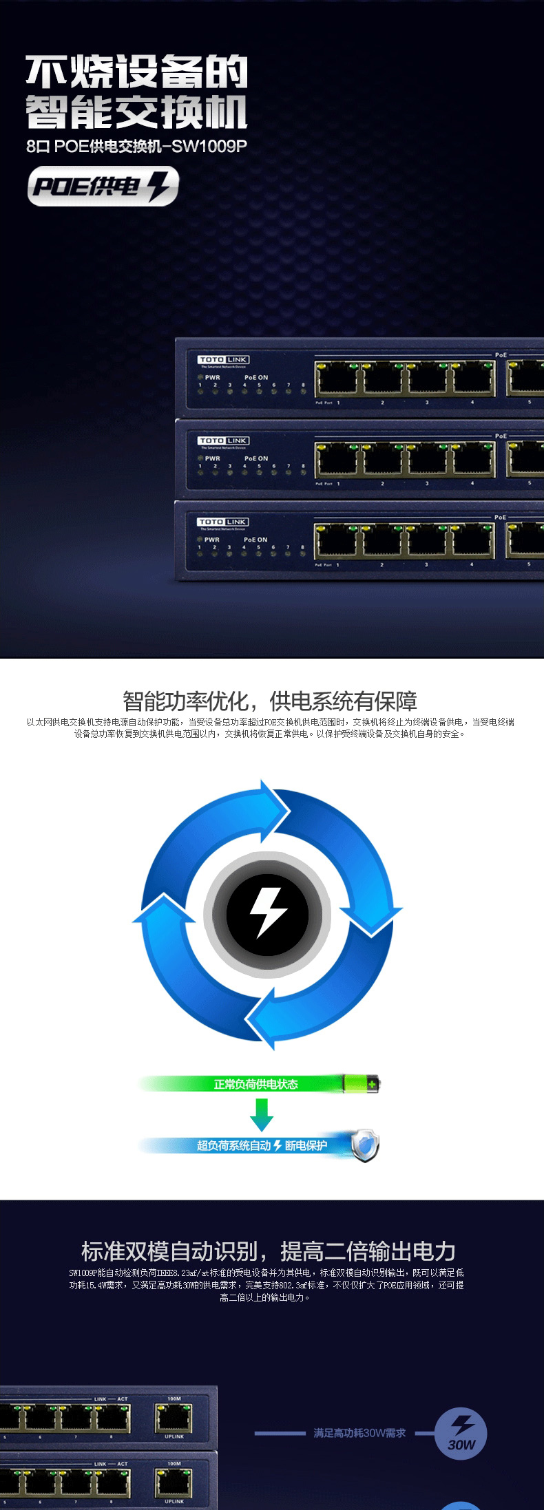 • TOTO-LINK SW1009P+ 8口 百兆 POE交换机