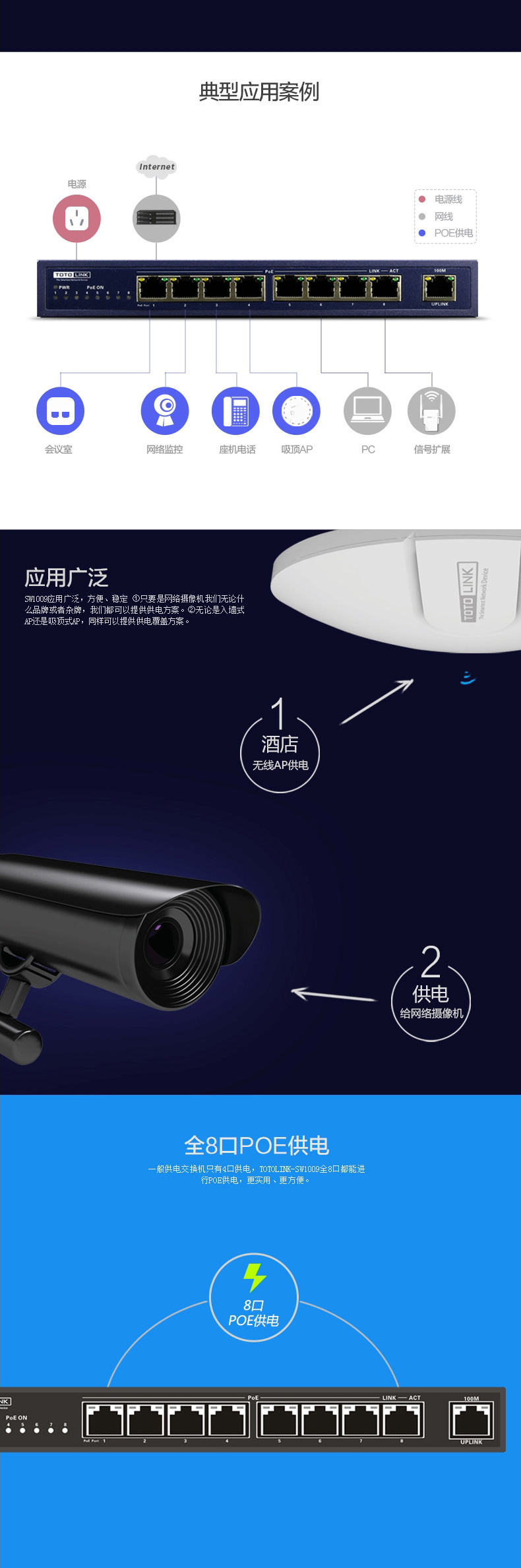 首页 > 网络设备 > 交换机 > TOTO-LINK > TOTO-LINK SW1009P+ 8口 百兆 POE交换机