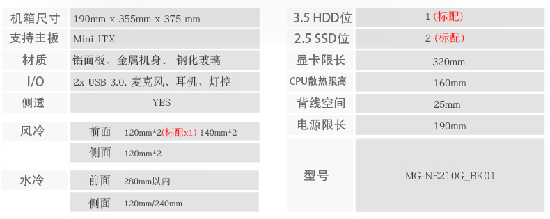 • 追风者 MG普力魔 NEO G Mini210G ITX铝质水冷 电竞台式 小机箱