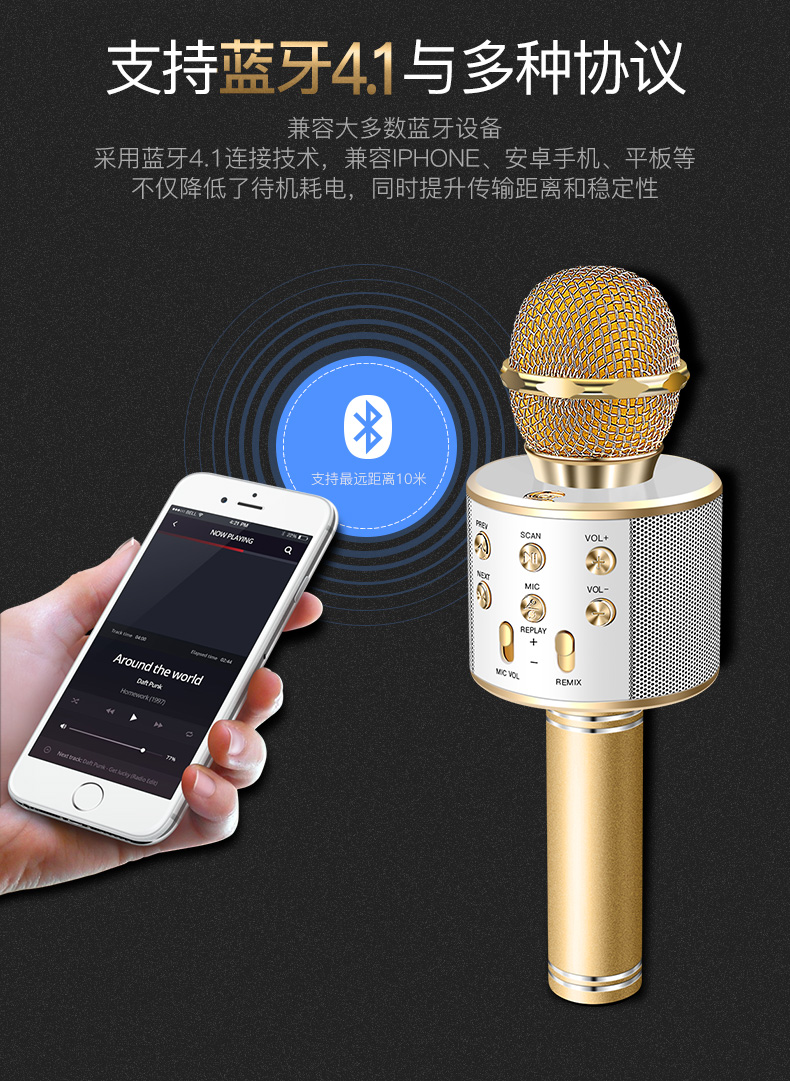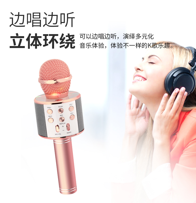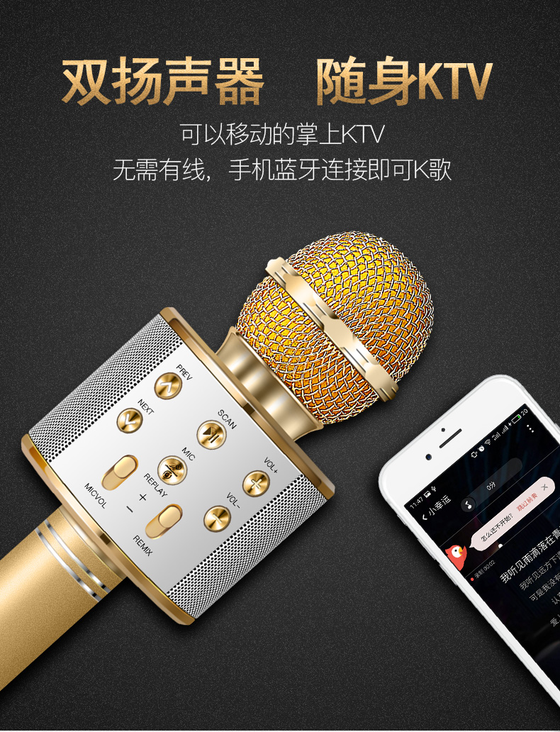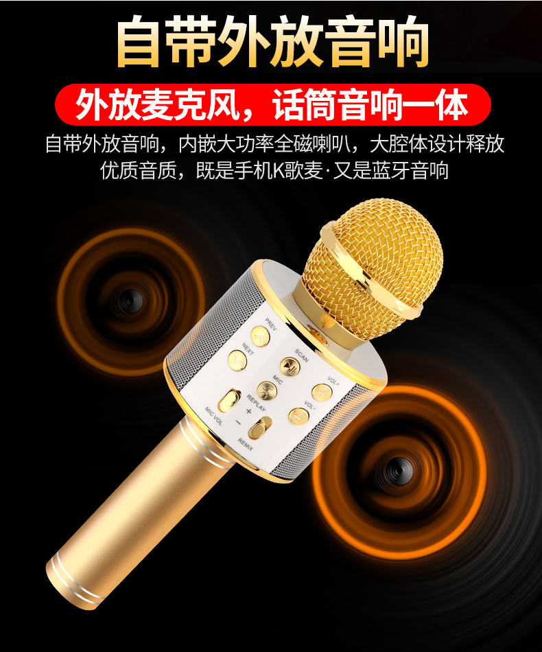 • 全民 K歌 唱吧WS-858手机无线蓝牙麦克风话筒音响一体K歌可变声中文