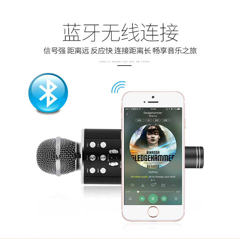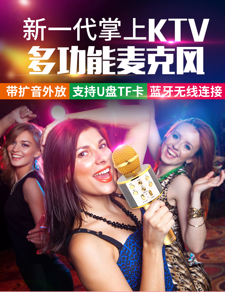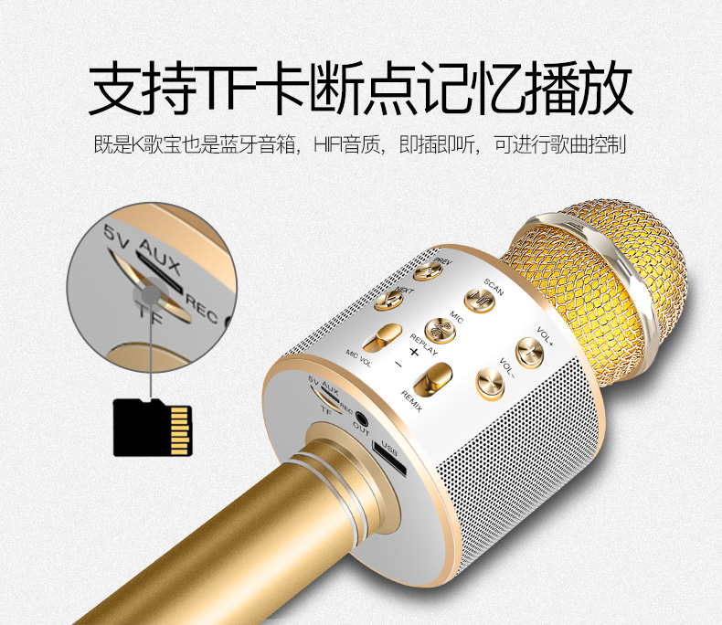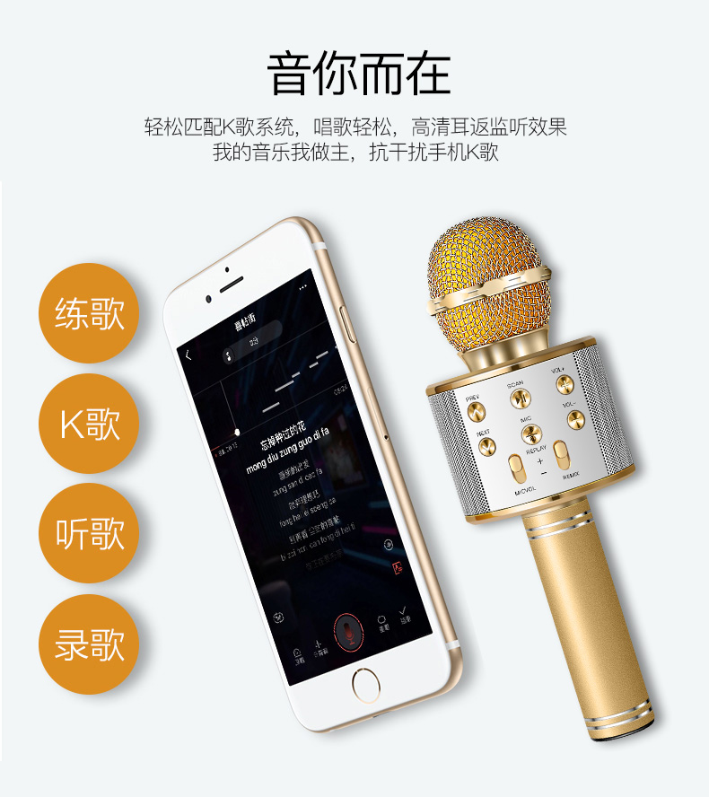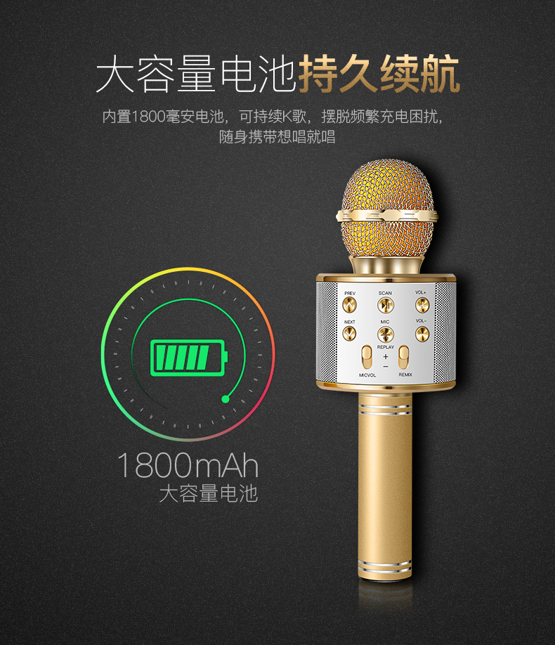 • 全民 K歌 唱吧WS-858手机无线蓝牙麦克风话筒音响一体K歌可变声中文