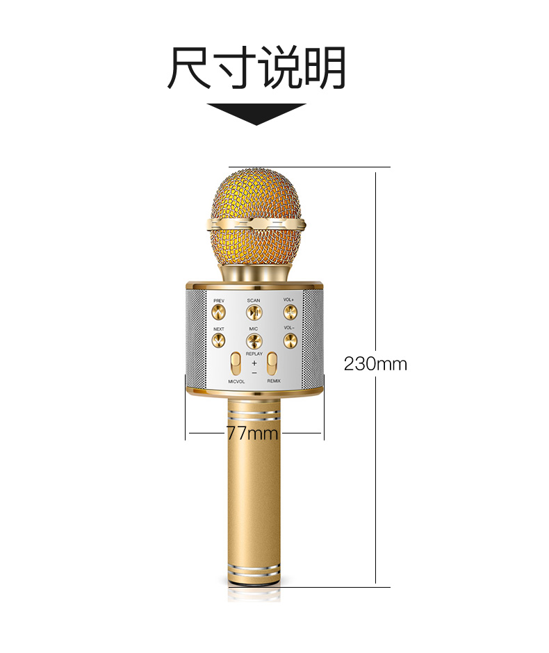 首页 > 外设 > 麦克风 > 其他 > 全民 K歌 唱吧WS-858手机无线蓝牙麦克风话筒音响一体K歌可变声中文