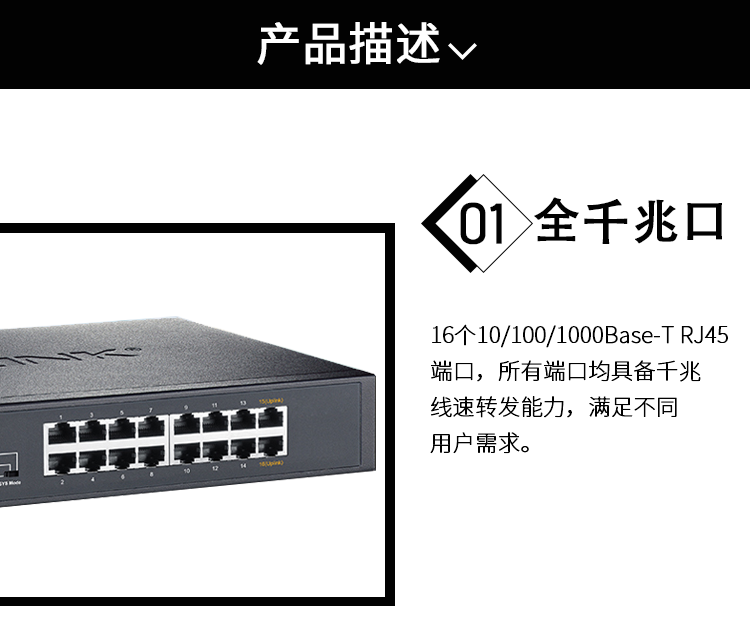 • 提供4/8/16/24多规格端口产品,所有端口均具备千兆线速转发能力,满足不同用户需求。