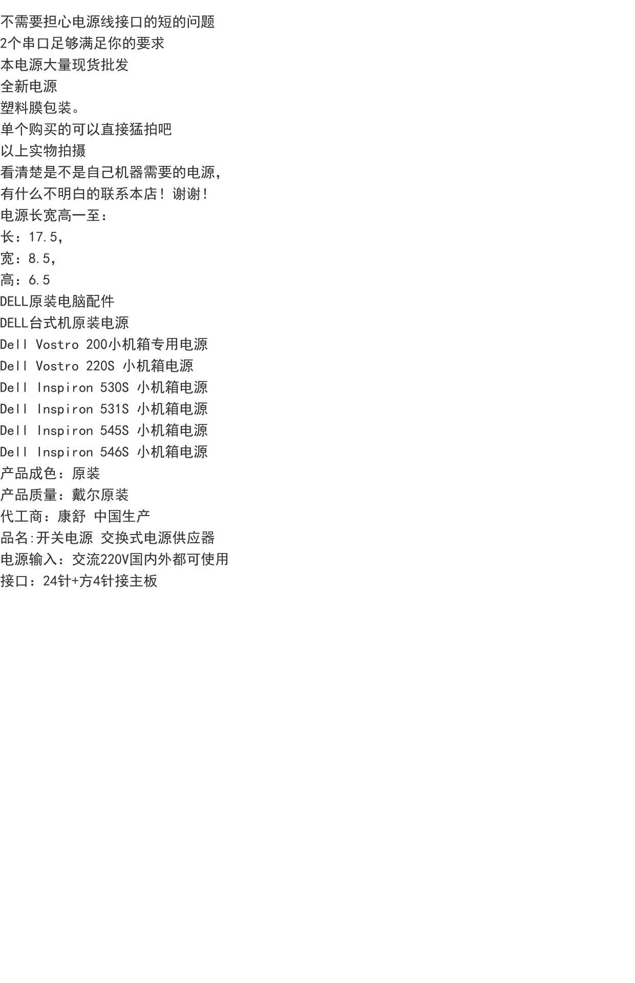 首页 > 电脑硬件 > 电源 > 其他 > 戴尔 全新 DELL vostro 220s 260s PC6038 TFX0250F5WA 电脑主机小电源