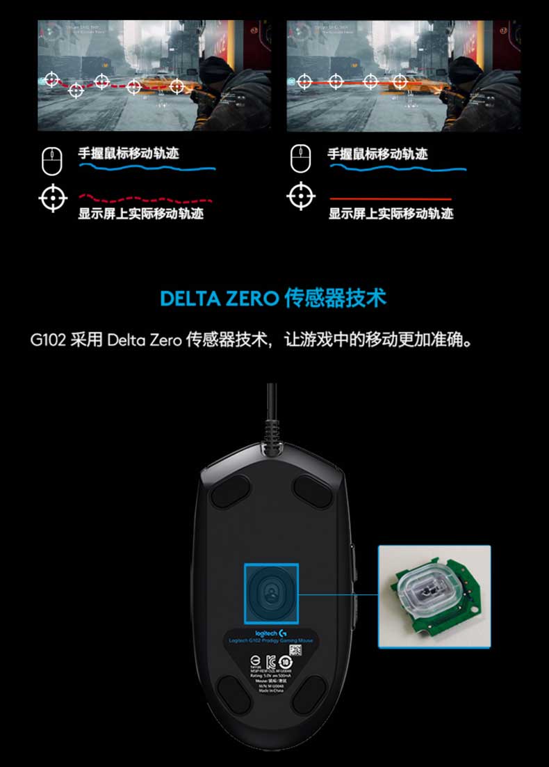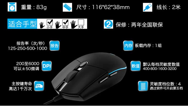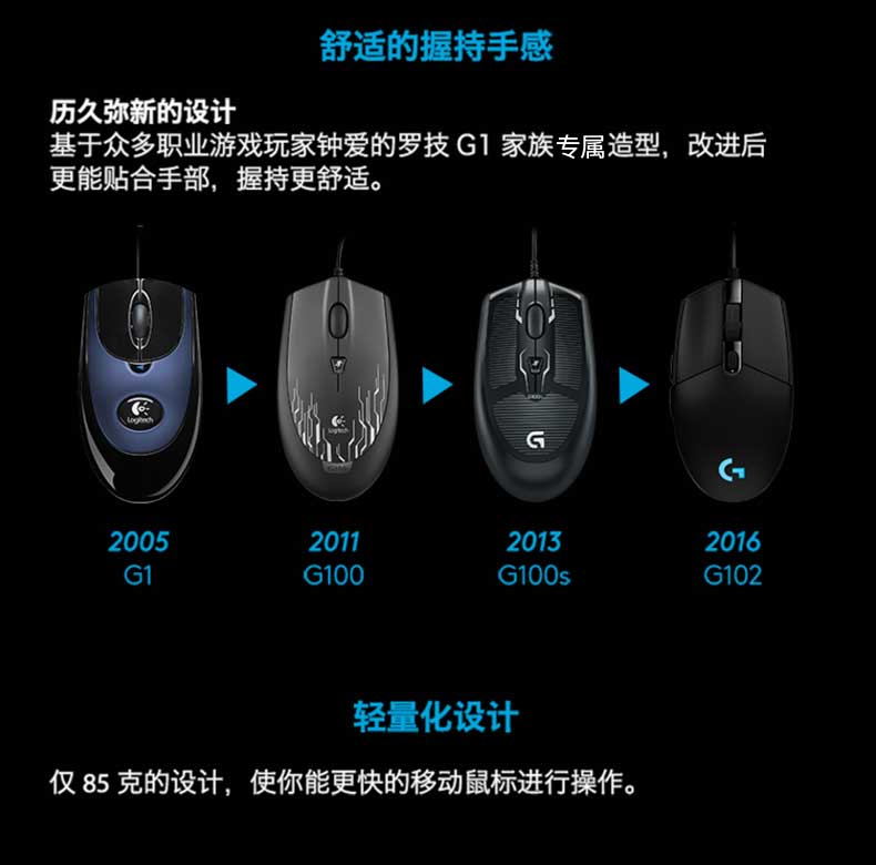 罗技 G102 游戏鼠标 黑色 RGB鼠标