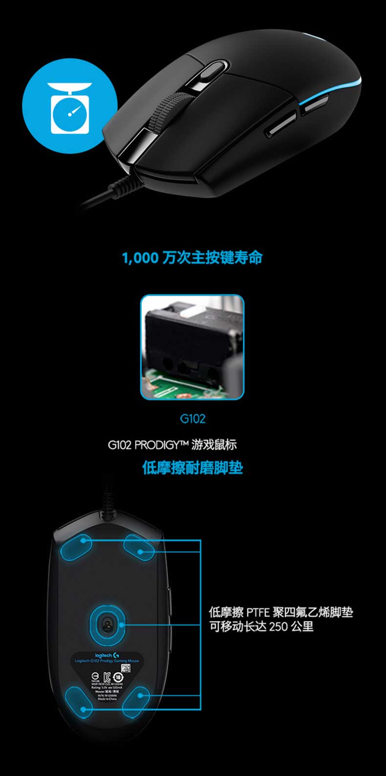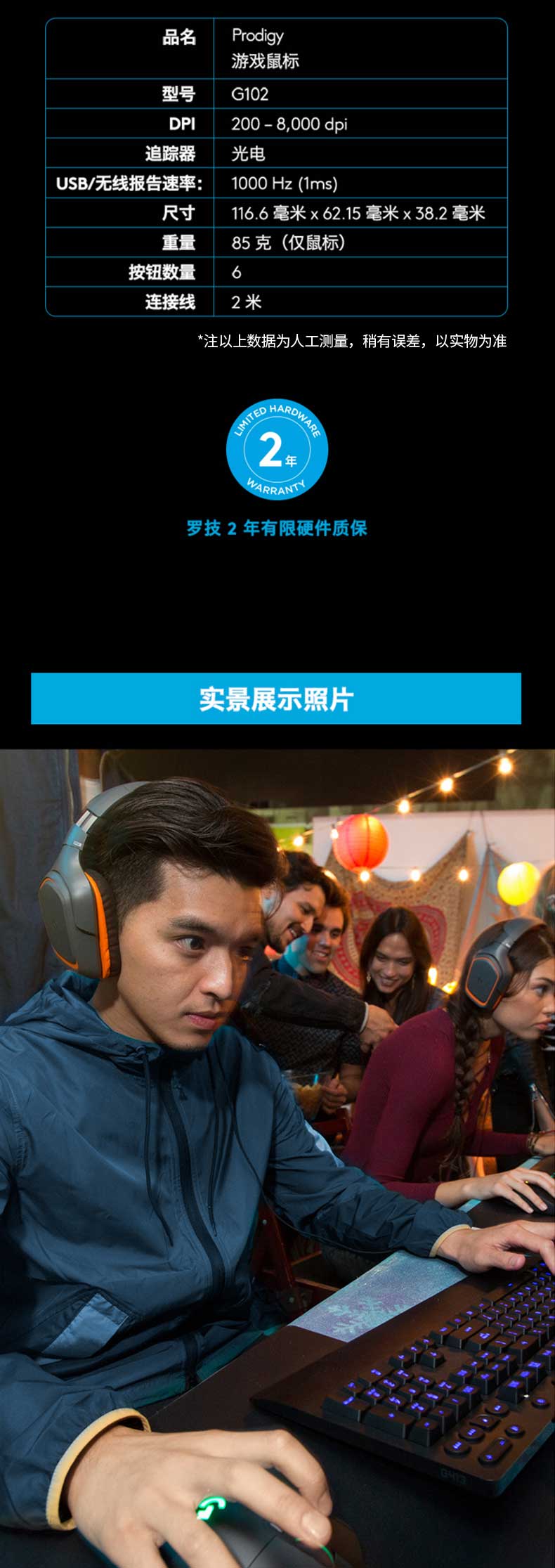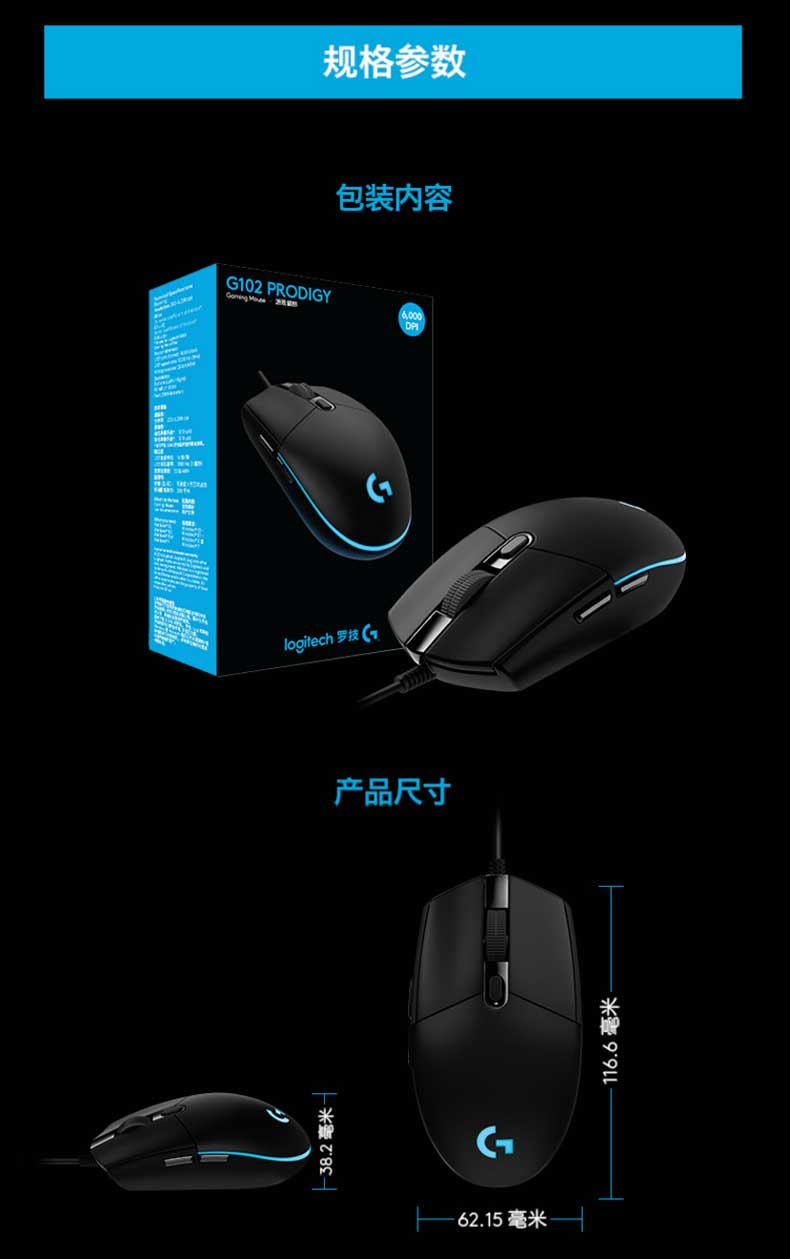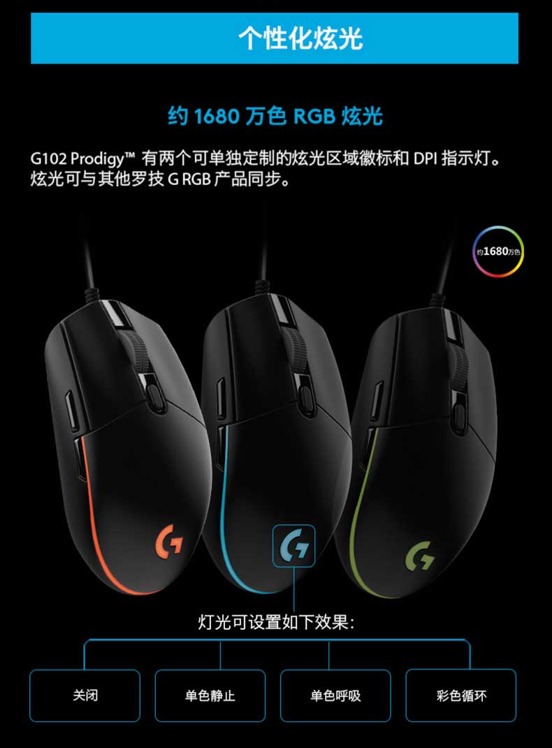 • 罗技 G102 游戏鼠标 黑色 RGB鼠标