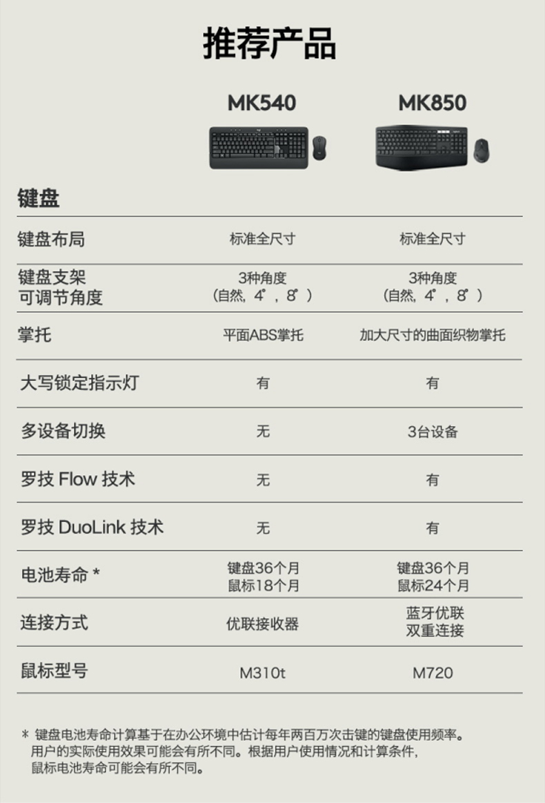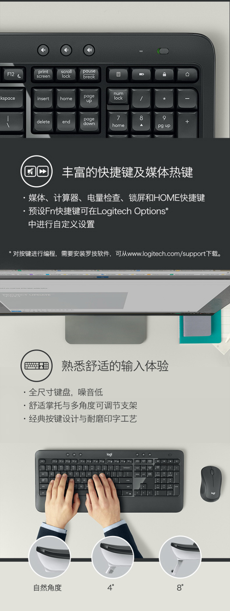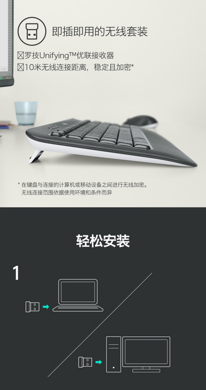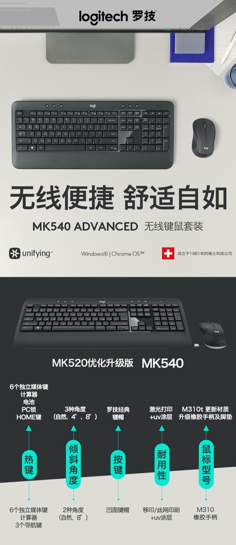 • 罗技 MK540 无线键鼠套装笔记本台式电脑办公家用游戏全尺寸键盘鼠标套装MK520升级款MK545