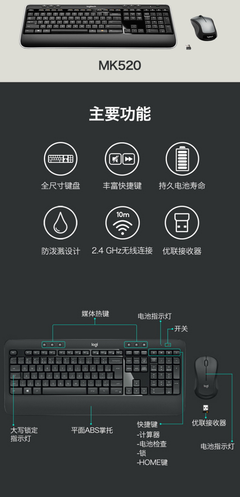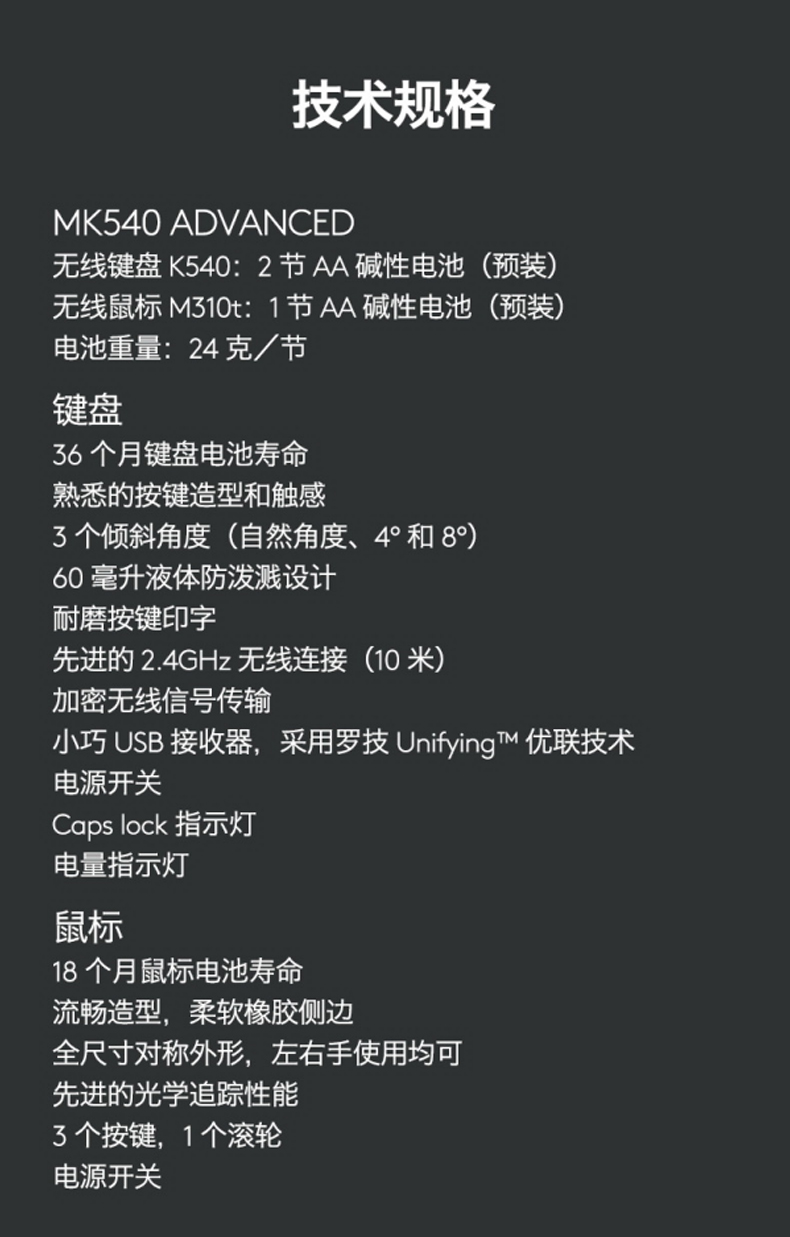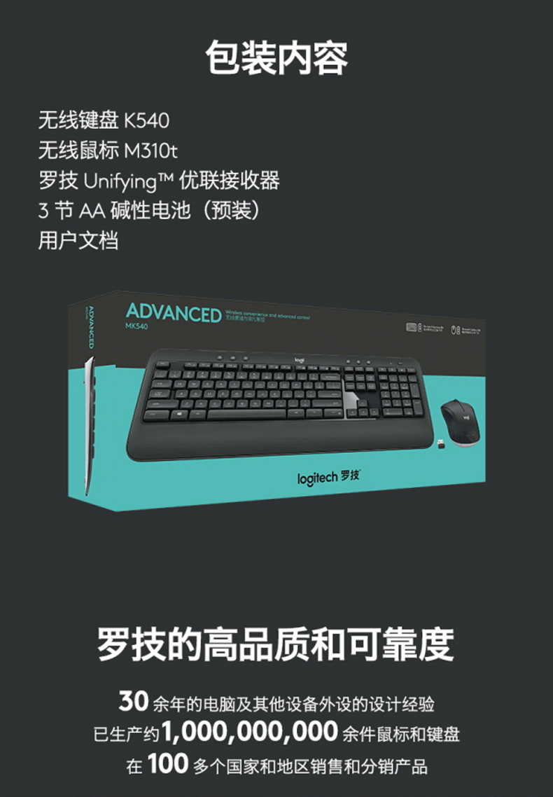 首页 > 外设 > 键鼠 > 罗技 > 罗技 MK540 无线键鼠套装笔记本台式电脑办公家用游戏全尺寸键盘鼠标套装MK520升级款MK545