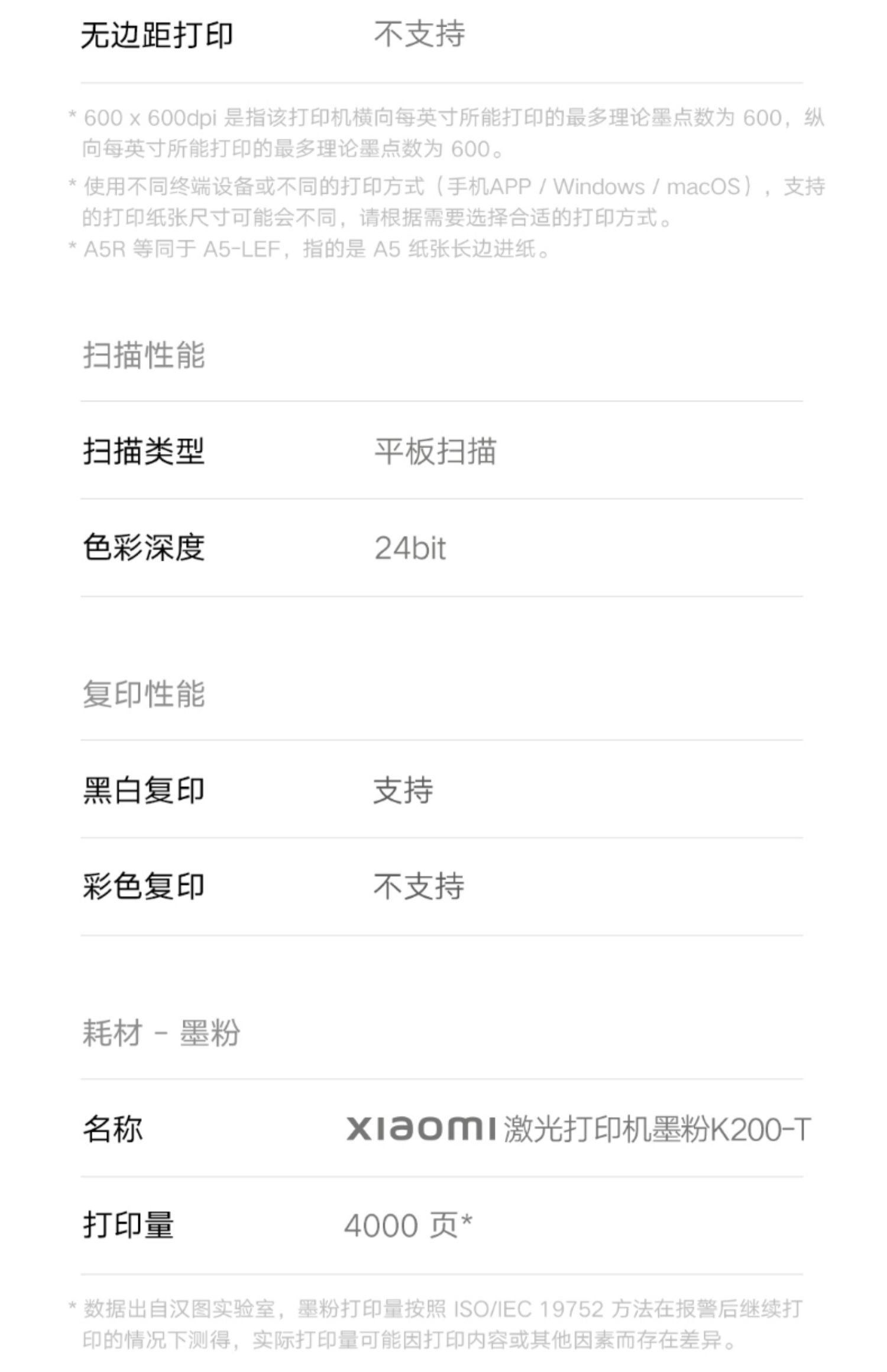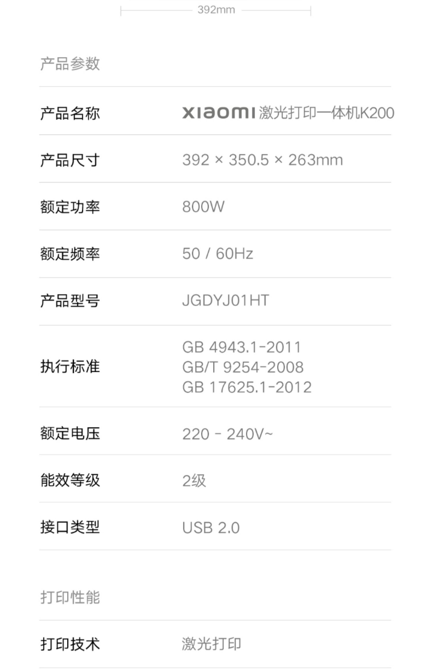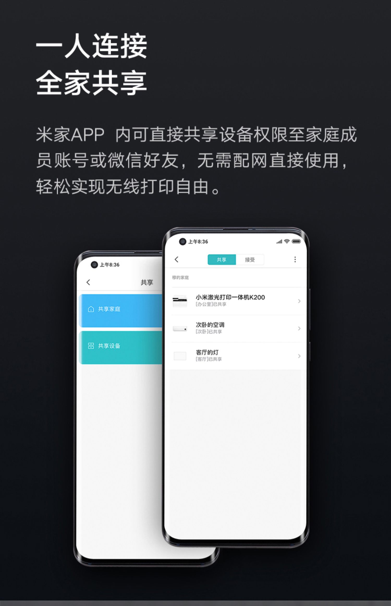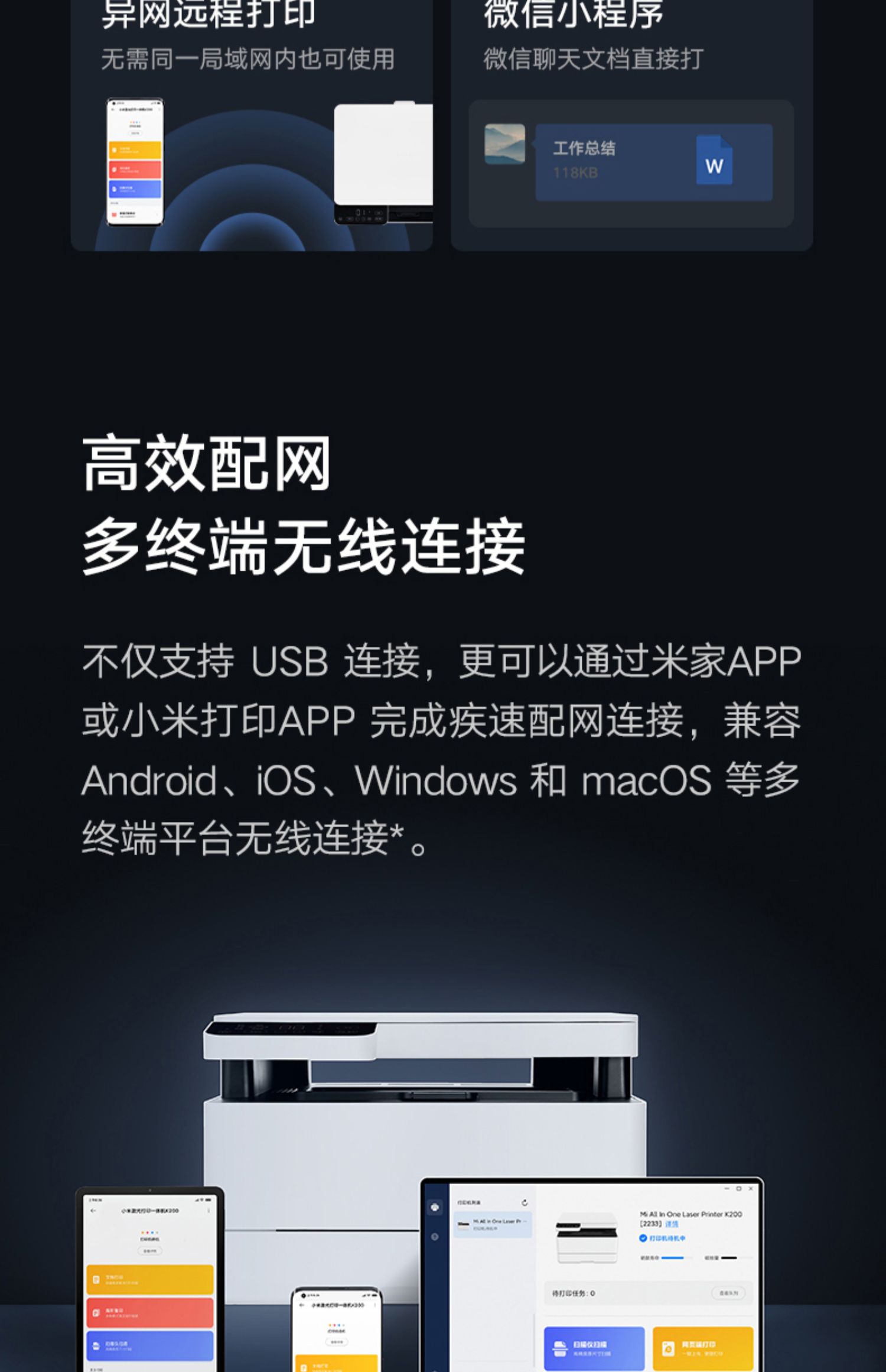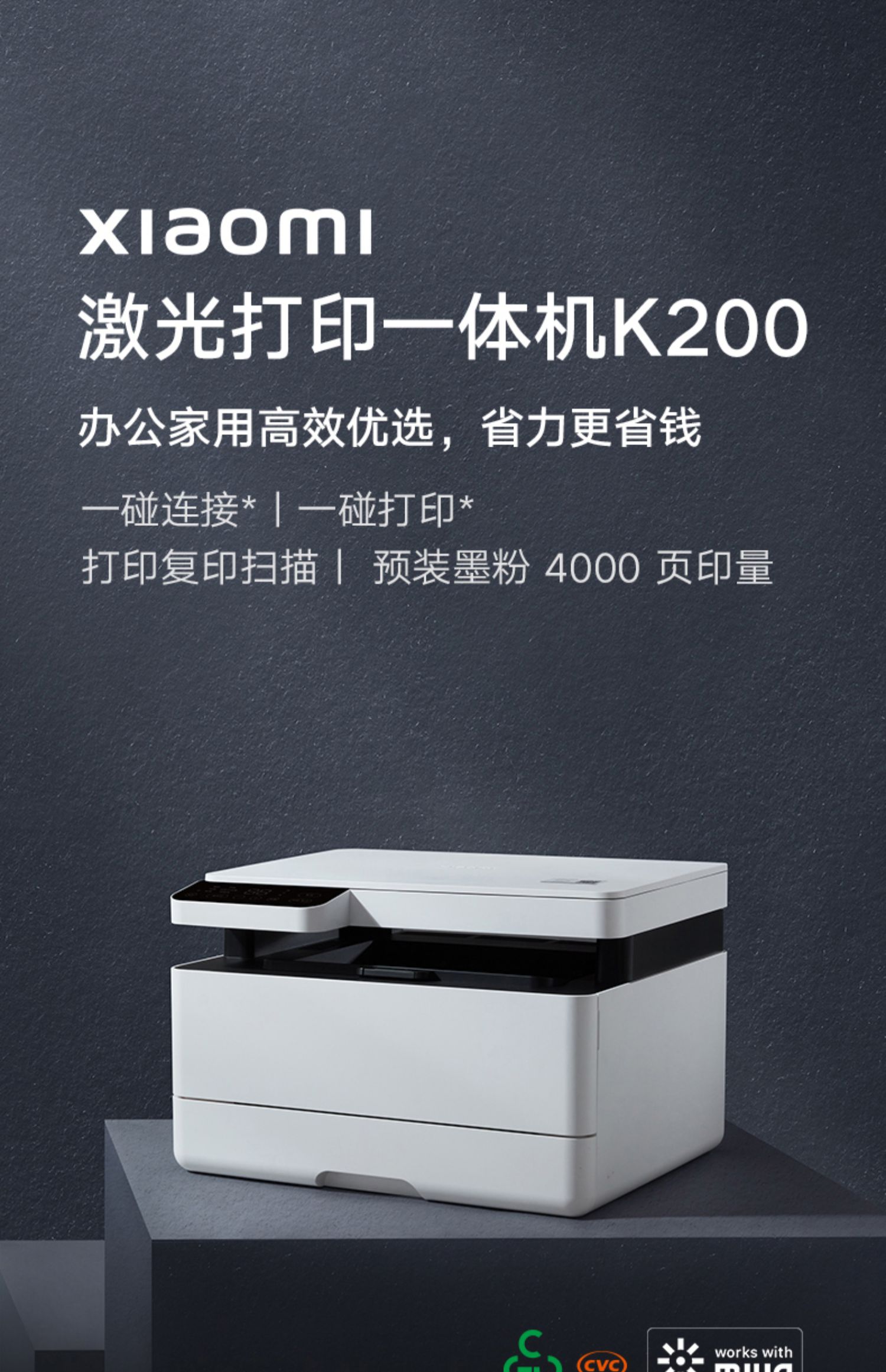 • 小米 K200 激光打印一体机 家用办公多功能学习打印复印扫描高效配网远程打印机